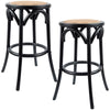 Aster 2pc Round Bar Stools Dining Stool Chair Solid Birch Wood Rattan Seat Black