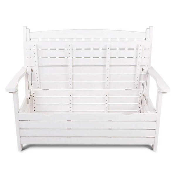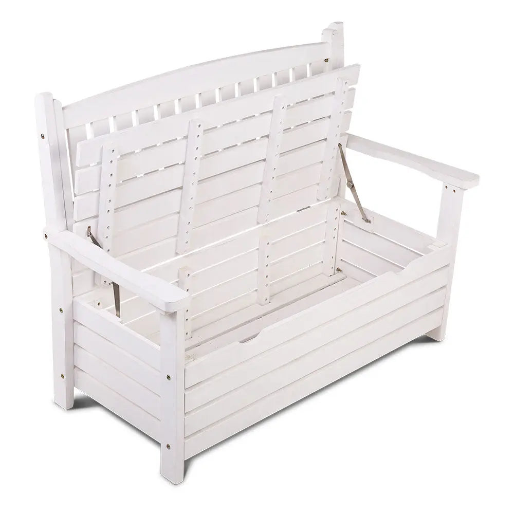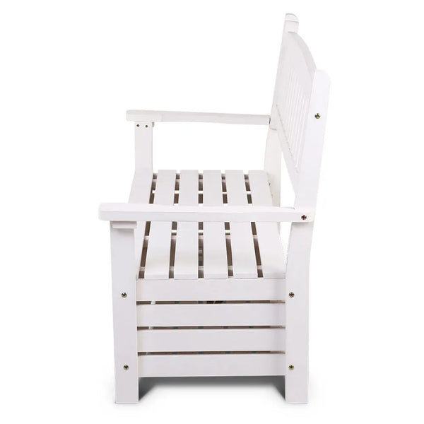 Gardeon Outdoor Storage Bench Box Wooden Garden Chair 2 Seat Timber Furniture White