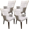 The journey to a comfortable dining experience begins with this 4-piece set of carver dining chairs. Bring home this beautiful dining chair with arms that promises both comfort and strength with its button-tufted seat, fabric upholstery, tapered legs, and a strong structural frame of sustainably harvested rubber wood. Decorate your dining area with these chairs in a light grey colour with antique walnut legs and enjoy the beauty of the dining area setting. The dining chairs are designed in the French Provincial style and provide comfortable back and lumbar support. Because of their gorgeous looks and designer stitching on the upholstery, they are a beautiful addition to your living area. And thanks to their homely shape, they look stunning in all decor settings and can be paired with a dining table of any style. A one-year warranty is included with the fully assembled dining chairs.