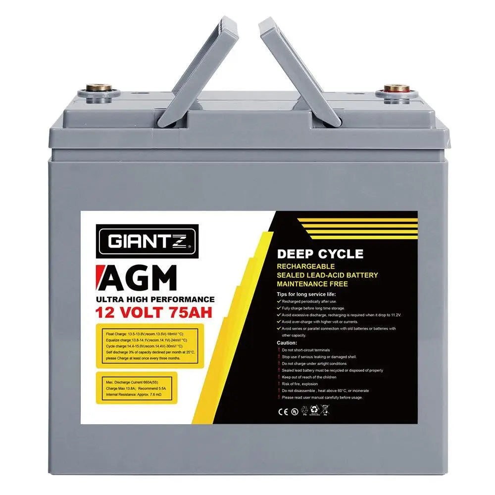 Giantz 75Ah Deep Cycle Battery 12V AGM Marine Sealed Power Portable Box Solar Caravan Camping