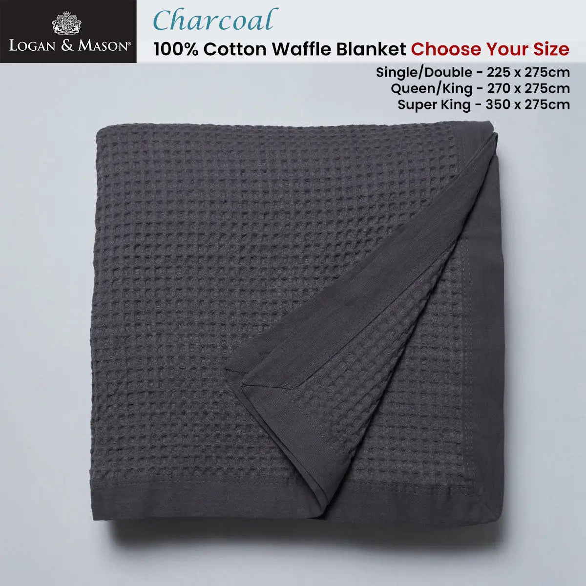 Logan and Mason Charcoal 100% Cotton Waffle Blanket Single/Double