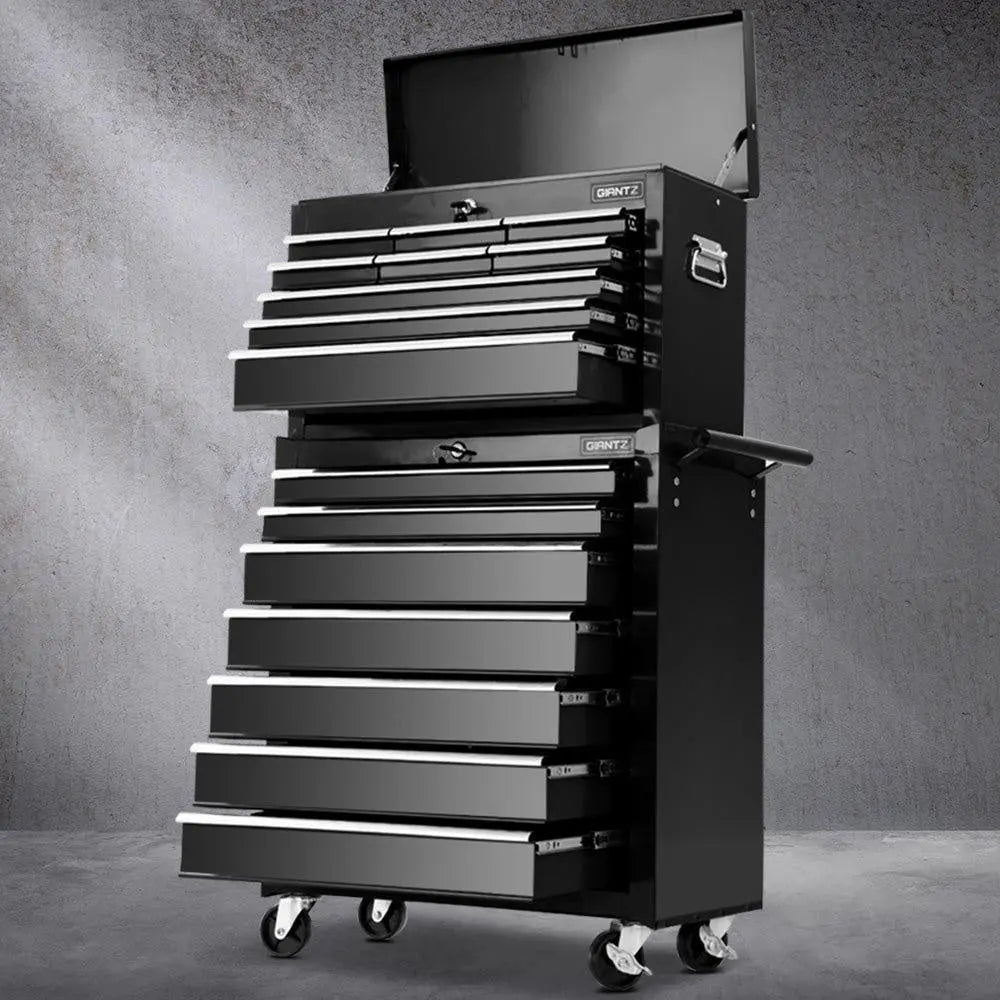 Giantz Tool Chest and Trolley Box Cabinet 16 Drawers Cart Garage Storage Black