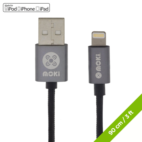 MOKI Lightning SynCharge Cable - 90cm/3ft Black Cable/Gun Metal Housing