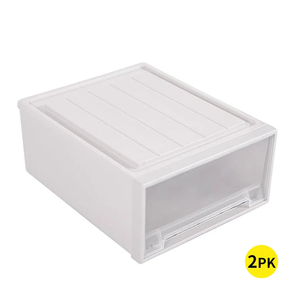 2x Plastic Wide Drawer Shoes Storage Boxes Stackable Clothes Kids Toys Organiser