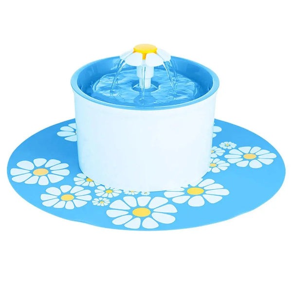 - Pet Water Drinker Flower Fountain uses running water.
