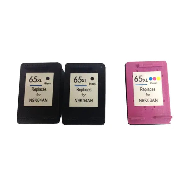 Remanufactured Value Pack (2 x HP65XL Black & 1 x HP65XL Colour) with New Chip