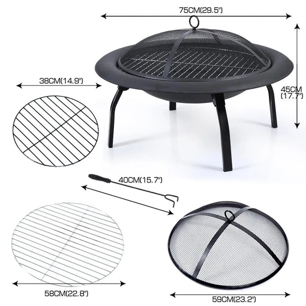 30" Portable Outdoor Fire Pit BBQ Grail Camping Garden Patio Heater Fireplace
