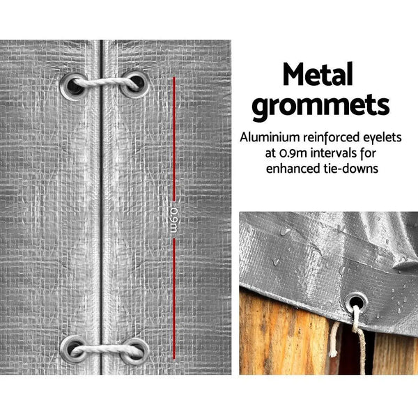 Instahut 3.6x4.8m Tarp Camping Tarps Poly Tarpaulin Heavy Duty Cover 180gsm Silver