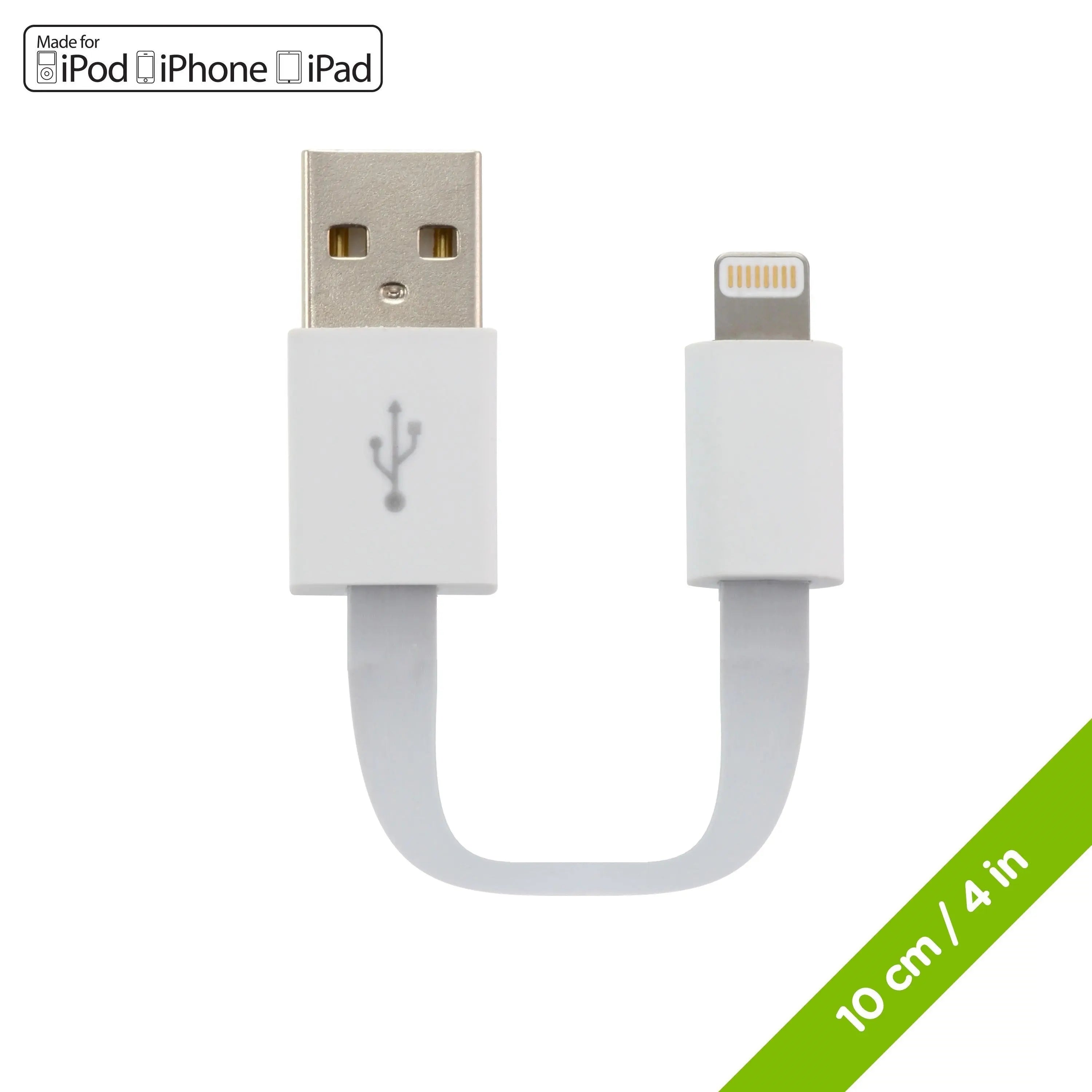 MOKI Pocket Lightning SynCharge Cable - 10cm/4" White (Apple Licenced)