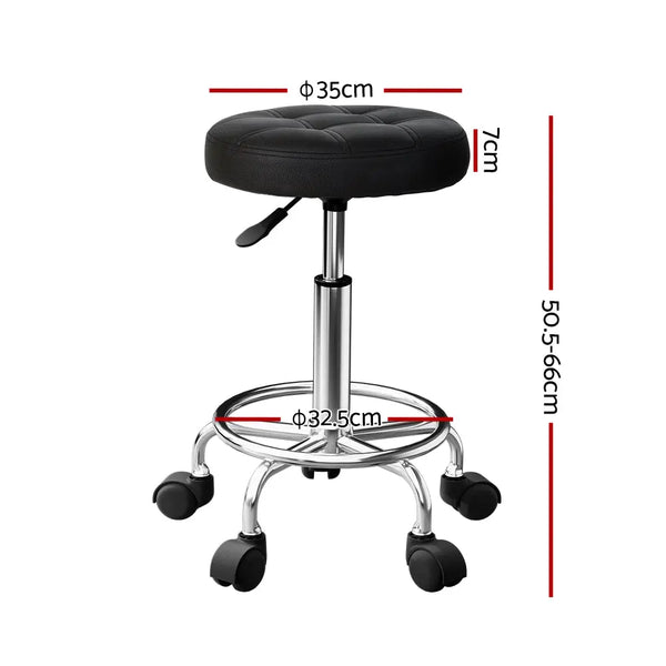 Looking to add a glamourous touch to your salon? You can do it effortlessly with the Artiss' gorgeous salon stool. It's not just for a salon, but you can use these stools in your tattoo parlour, medical clinic, café, and music studio. Our salon style stools will instantly give your space a stylish and modern look. These stools are designed for ultimate comfort and convenient use. It features a round seat design that makes you feel comfortable even if you've been sitting for long hours. The thick foam padding makes the seat soft, and the PU leather upholstery with a light sheen highlights its alluring texture. Our salon stool also has five nylon smooth castor wheels that offer easy manoeuvrability. The seat is 360˚ rotatable, enabling you to face any direction. It also comes with a heavy-duty footrest and base for added stability and comfort. You can even adjust its height with an SGS-certified gas lift lever. So why wait? Purchase this beautifully designed salon stool. You won't regret it.