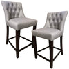 The journey to a comfortable wine and dining experience begins with this 2-piece high stool set. Bring home these beautiful armless high stools that promise both comfort and strength with their button-tufted seat, fabric upholstery, tapered legs, leg rest, and a strong structural frame of sustainably harvested rubber wood. Decorate your dining area with this high stool set in a light grey colour with antique walnut legs and enjoy the beauty of the dining area setting. The bar stools are designed in a French Provincial style and provide comfortable back and lumbar support. Because of their gorgeous looks and designer stitching on the upholstery, they are a beautiful addition to your living area. And thanks to their homely shape, they look stunning in all decor settings and can be paired with a table of any style. A one-year warranty is included with the fully assembled high stools.
