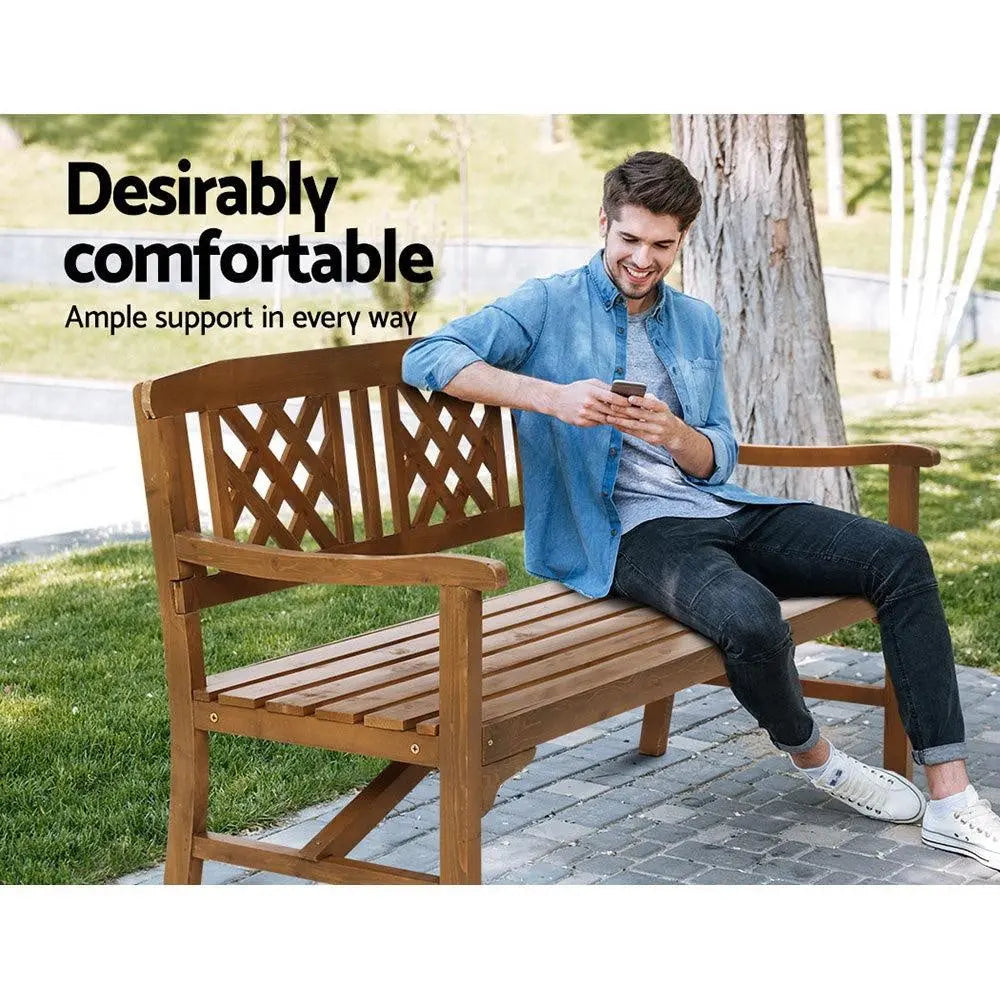 With its appealing rustic vibes, our Gardeon Garden Bench is perfect for outdoor or indoor use. The beautiful natural fir wood construction is meticulously handcrafted to bring out its finest qualities. The finishing is impeccable as is the classic design that will certainly stand the test of time and trends. The lattice-pattern backrest adds character to the bench while also providing sturdy support. With ample space to seat three, the bench features a strong inherent structure that can take weights of up to 300kg with minimum hassle. Not least, the bench is designed to ensure that your comfort is always forefront in its form and function.