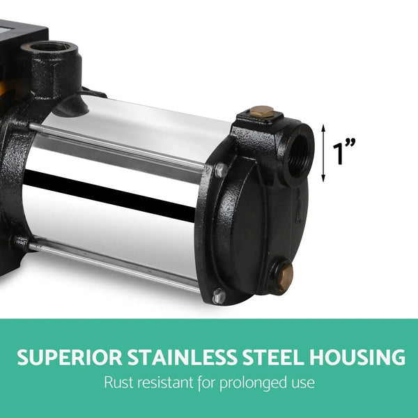 The Giantz 2000W 4 Stage pressure pump is your go to pump for constant and reliable pressure. Ideal for clean or rain water, it can produce with maximum flow of 7,200L/hr and maximum head of 51m. Designed for permanent installation as a pressurised water source, it is ideal for filling up toilets, washing machines, dishwashers, kitchen taps, showers, irrigation systems or watering the garden. Made to last with an IP rated motor, stainless steel pump body and cast iron ends, you can ensure that you get the peace of mind. This unit also includes a fully automatic pressure controller with precise pressure gauge. You can always adjust the start up pressure from 1.5 bar onward till 10 bar.