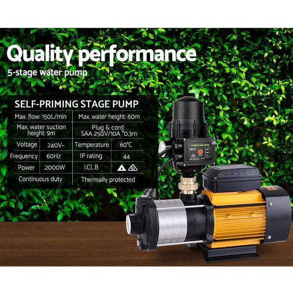 Giantz Multi Stage Water Pump Pressure Rain Tank Garden Farm House Irrigation 2500W