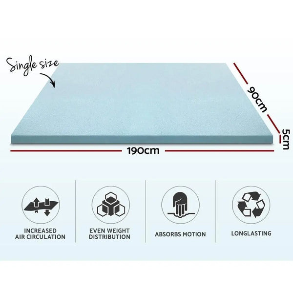 Giselle Bedding Cool Gel Memory Foam Mattress Topper w/Bamboo Cover 5cm - Single