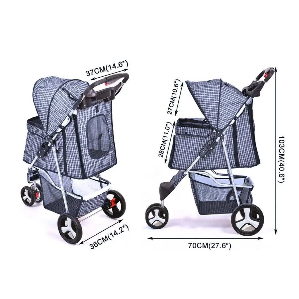 PaWz Pet Stroller 3 Wheels Dog Cat Cage Puppy Pushchair Travel Walk Carrier Pram
