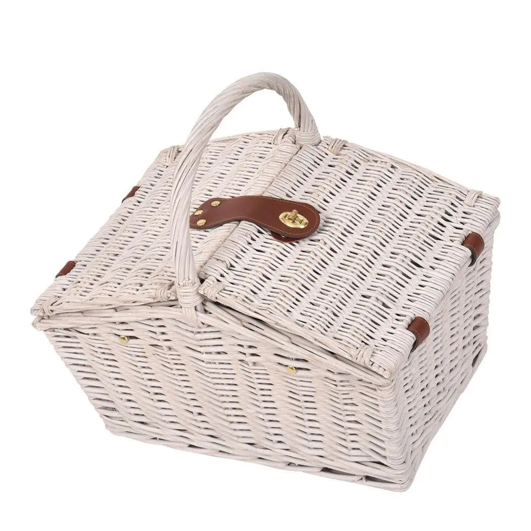2 Person Picnic Basket Baskets Set Outdoor Blanket Deluxe Wicker Gift Storage