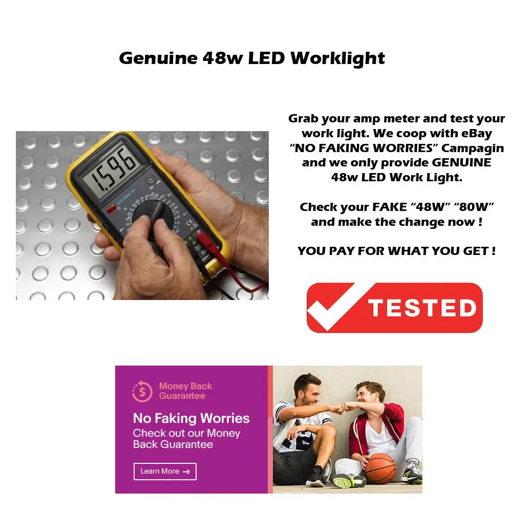 2PCS 48W LED Work Lights FLOOD Lamp Off Road 12V 24V Boat Camping Fishing 80w