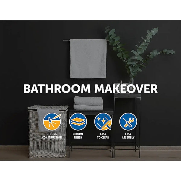 This toilet paper holder has a brilliant chrome finish. A simple hook design keeps the toilet paper on the holder without the need for a spring roller. A modern sleek design is built to last and updates any bathroom.