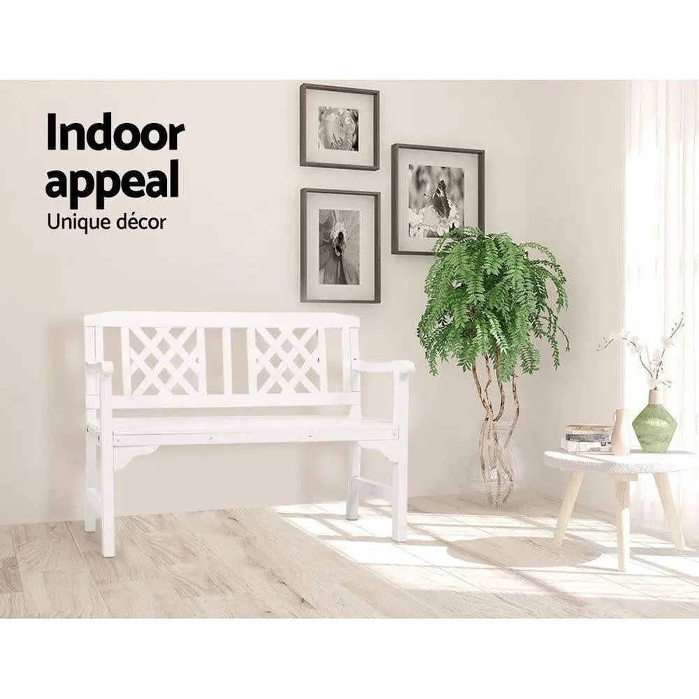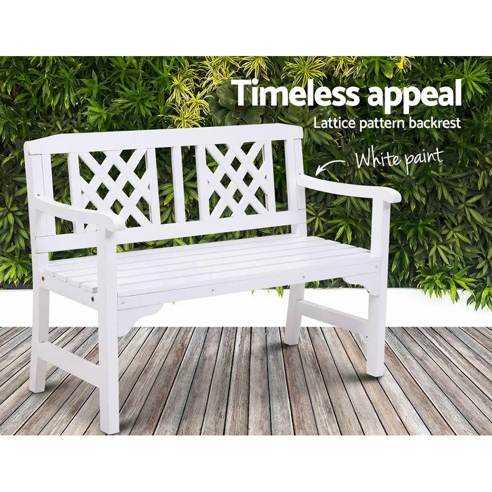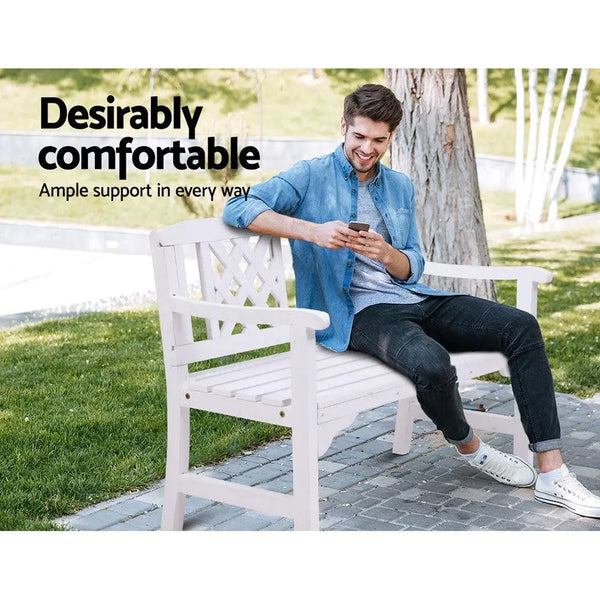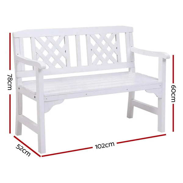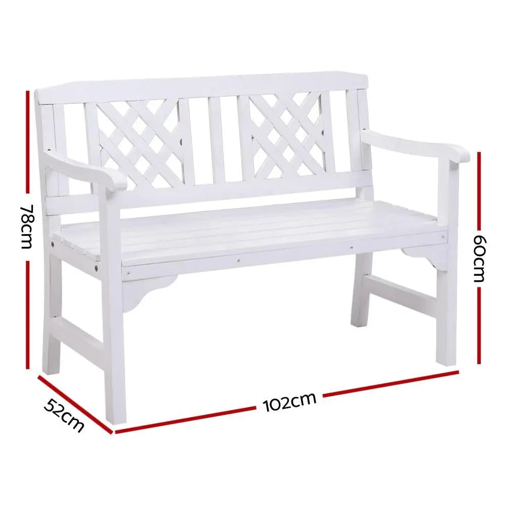 Gardeon Wooden Garden Bench 2 Seat Patio Furniture Timber Outdoor Lounge Chair White