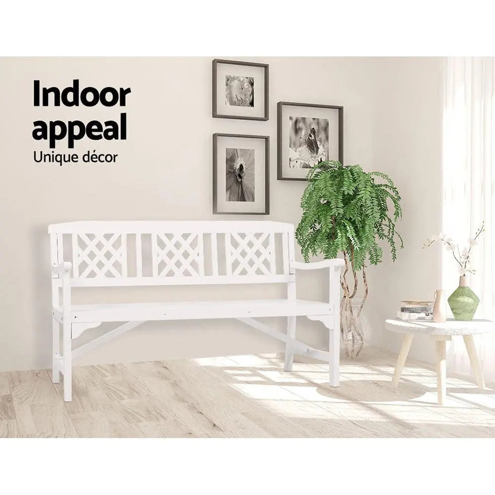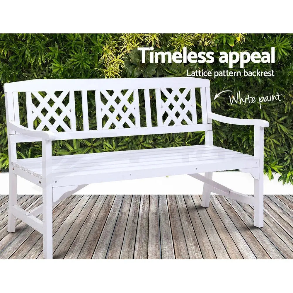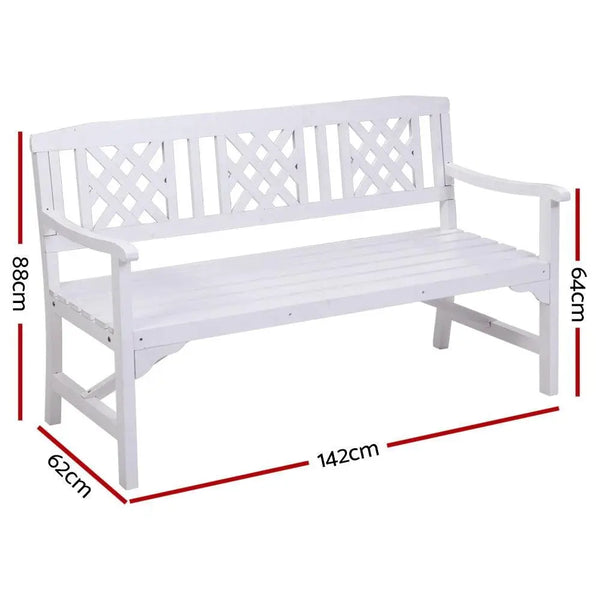 Gardeon Wooden Garden Bench 3 Seat Patio Furniture Timber Outdoor Lounge Chair White