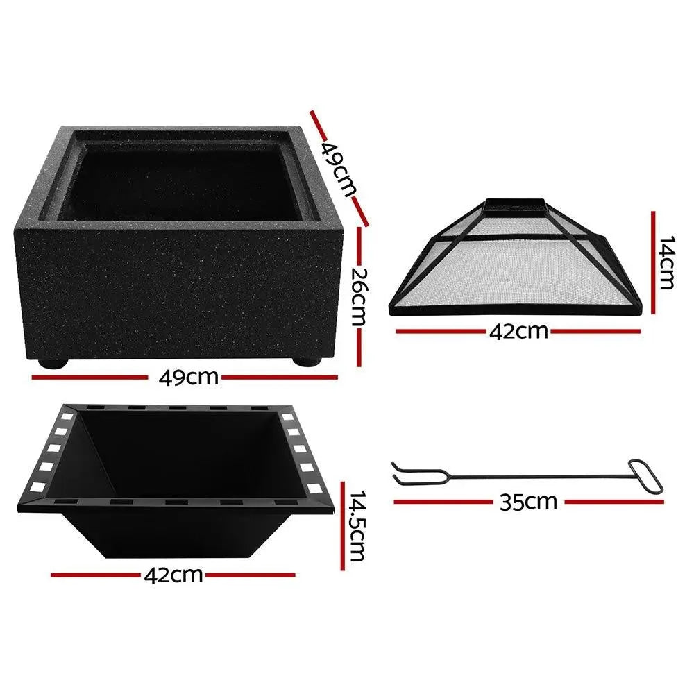 Fire pit size: 48.5cm x 48.5cm x 26cm