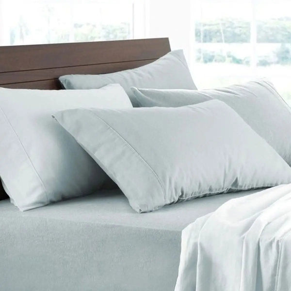 The Soft Brushed Cotton Flannelette Sheet Set Surf 40cm Wall by Logan and Mason is brushed for softness. Each set includes a fully elasticised fitted sheet with deep 40cm walls, cuffed and piped flat sheet and two matching pillowcases. Available in Surf, surf, rose, chambray and charcoal.