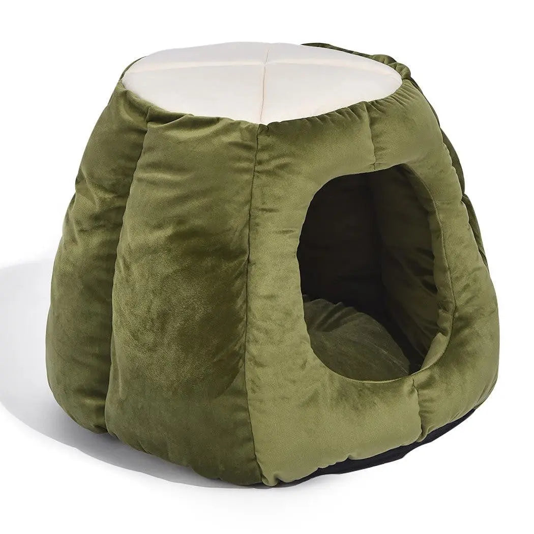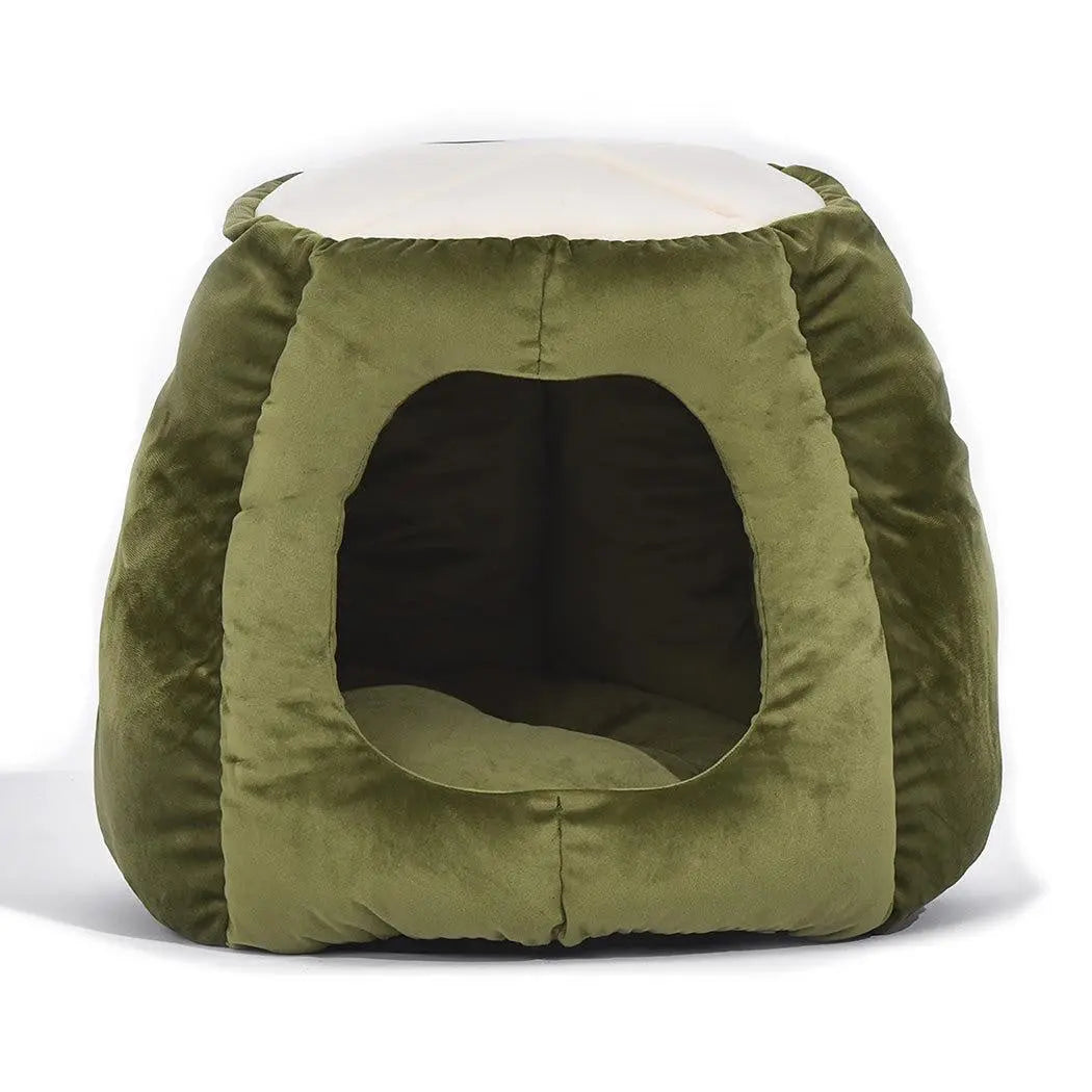 Pet Bed Cat Beds Bedding Castle Igloo Round Nest Comfy Kennel Cave Green L