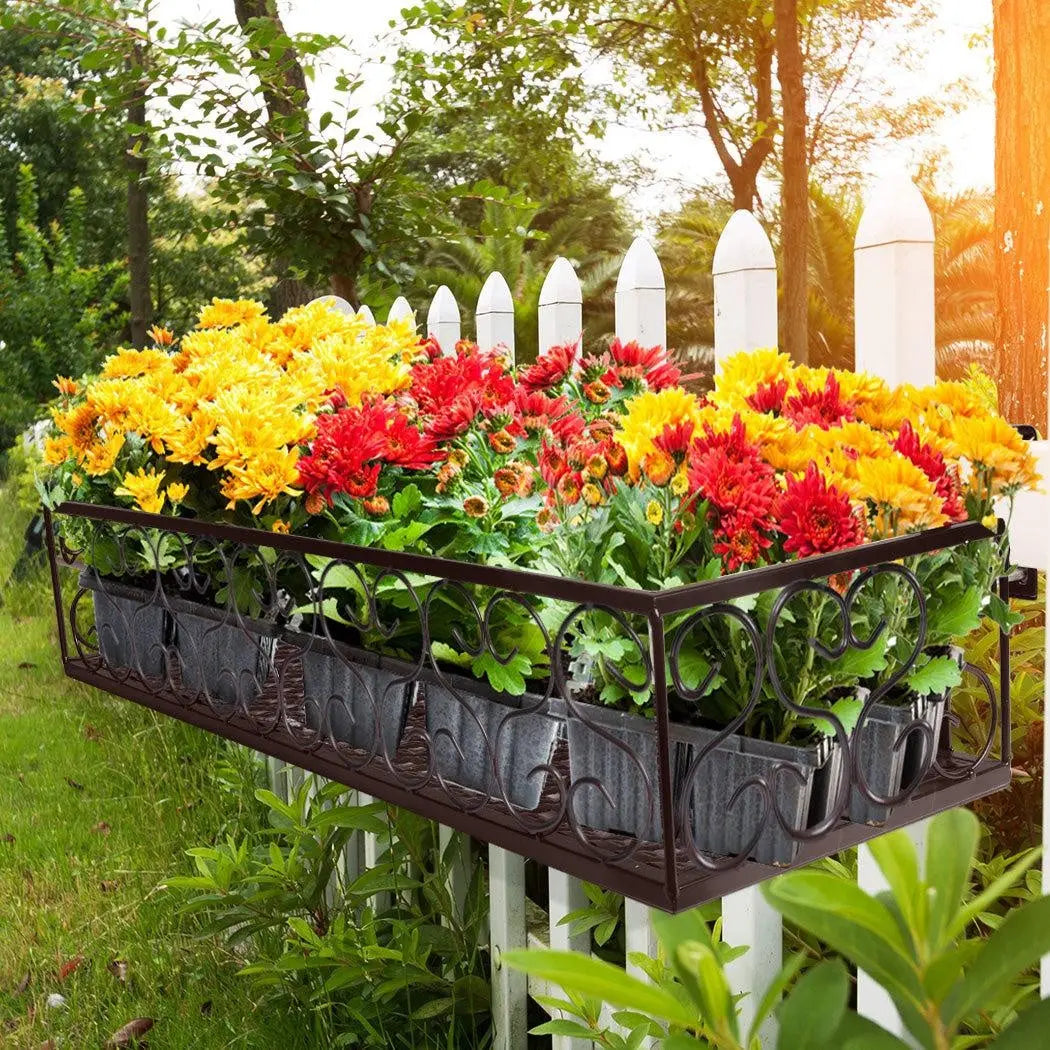 Plant Holder Plant Stand Hanging Flower Pot Basket Garden Wall Rack Shelf Rectangle Bronze