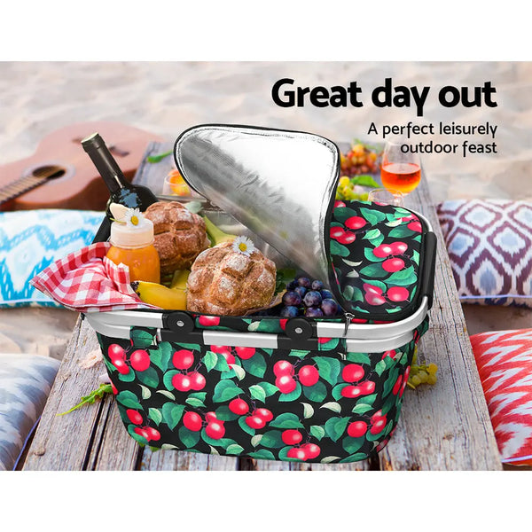 Alfresco Folding Picnic Bag Basket Cooler Hamper Camping Hiking Insulated Lunch