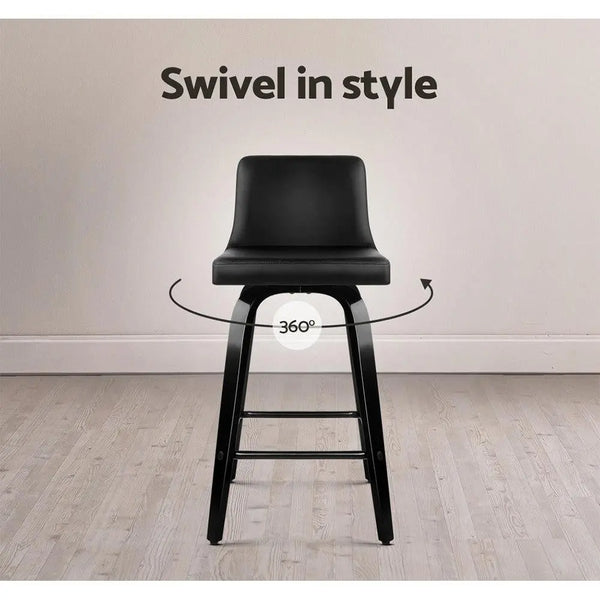 Artiss Set of 2 Wooden PU Leather Bar Stool - Black