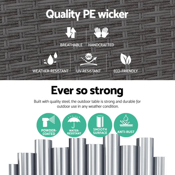 Looking to create a chic and gorgeous outdoor setting? The Gardeon wicker table is a must purchase. It will liven up your outdoor space and help you achieve an elegant space where you can enjoy day and night, summer and winter. Our wicker table can easily match up with your outdoor furniture. Its beautiful and versatile design makes it perfect for indoor and outdoor use. This piece of furniture features a lovely rattan weave for a touch of tropical charm, and the PE wicker is weather-resistant and rust-resistant. It is crafted with a sturdy steel structure and tempered glass tabletop for strength and durability. So rest assured that this wicker table will withstand the test of time. You can use this table in different ways; style it as a coffee table, side table, or tray table. You can create a praise-worthy spot with just a little creativity that will wow your guests. You will not want to miss all the goodness it has to offer. Shop it for your home today.
