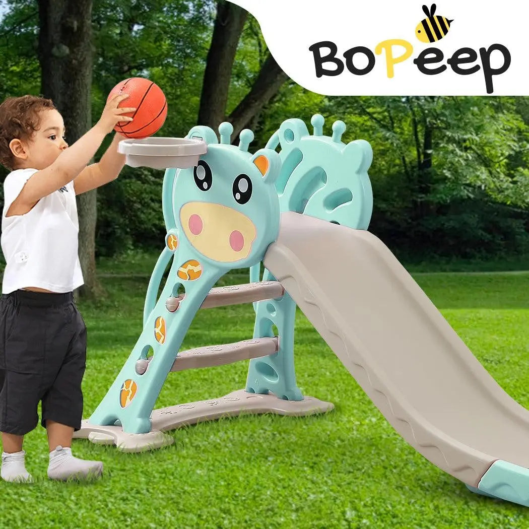 BoPeep Kids Slide Outdoor Basketball Ring Activity Center Toddlers PlaySet Green