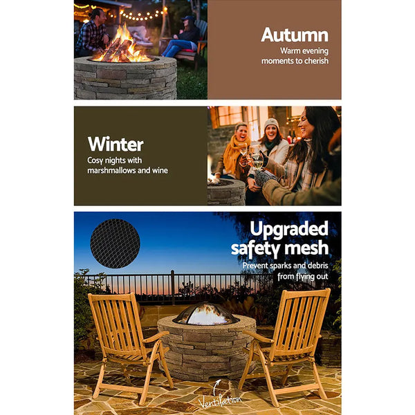 Grillz Fire Pit Outdoor Table Charcoal Fireplace Garden Firepit Heater