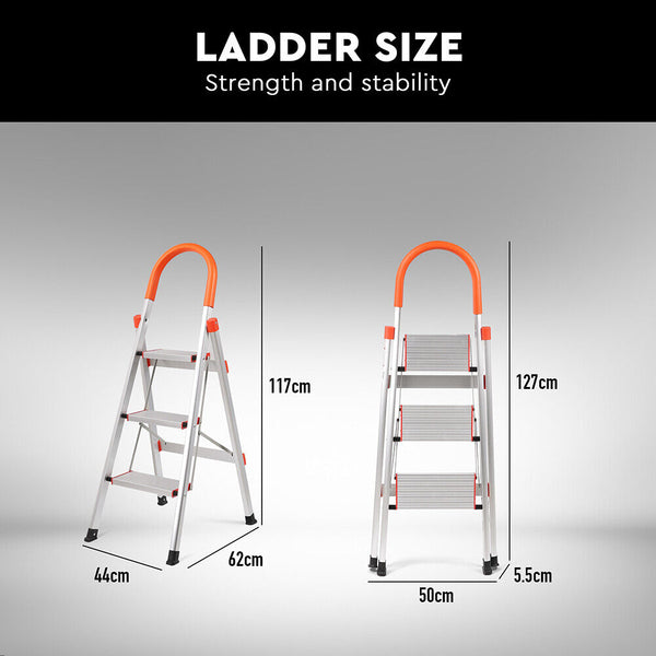 3 Step Ladder Multi Purpose Household Office Foldable Non Slip Aluminium[