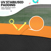 Suitable for both children and adults, this trampoline has many safety features, including a reinforced and UV-stabilised padding cover, an anti-graze mat and a weatherproof net enclosure to prevent falls.