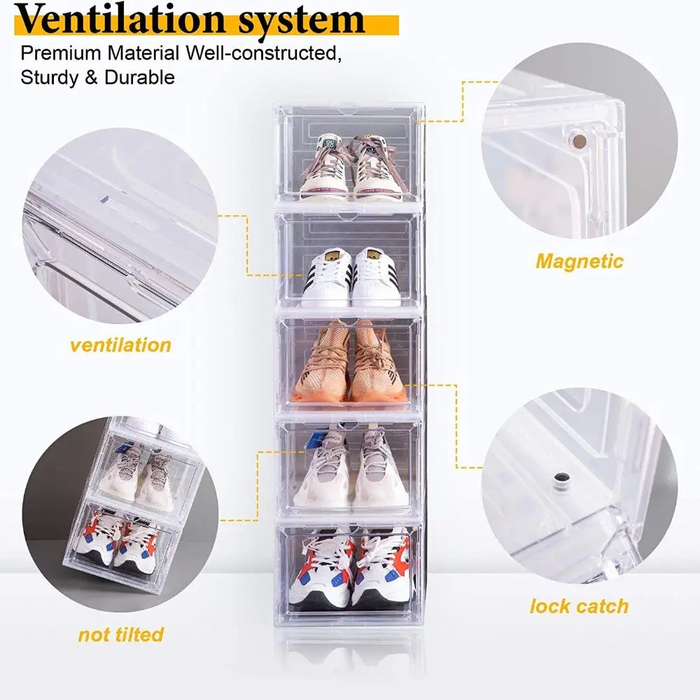 Clear front plastic shoe organiser makes sure you can see inside the box & find the right shoes easily without opening all the boxes