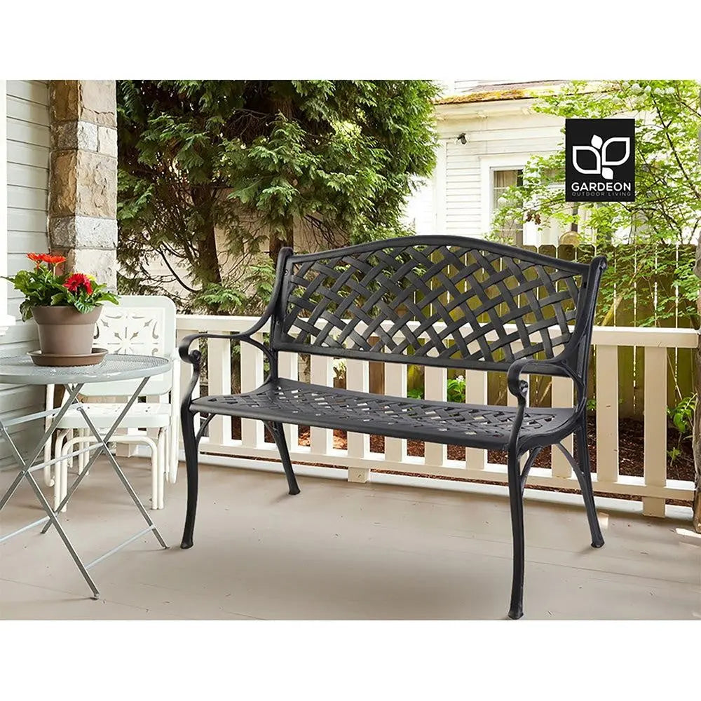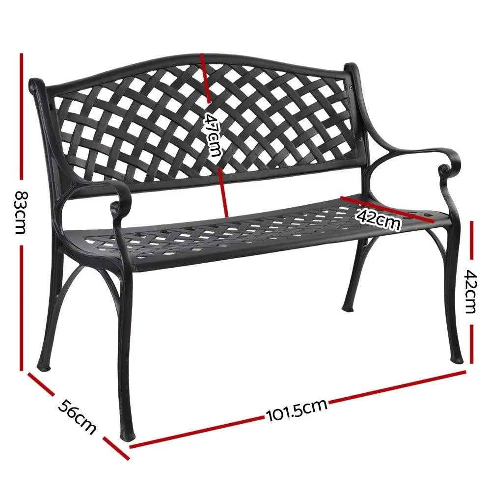 Gardeon Garden Bench Outdoor Seat Chair Cast Aluminium Park Black