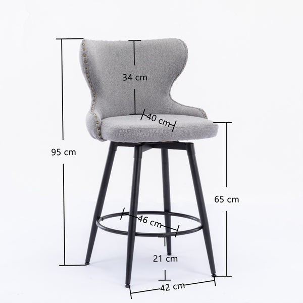 Innovative Material: Unlike the typical synthetic leather, our technological material, microfiber fabric, embraces prominent advantages which are highly breathable, wear-resistant, and durable. Successfully mimicking leather-like touching, the fabric elevates elegance to the bar chair set. Inspired by the mid-century style, these bar-height stools with button-tufted backrest and gold stud trimming bring a sense of classic and merges seamlessly into your room décor.
