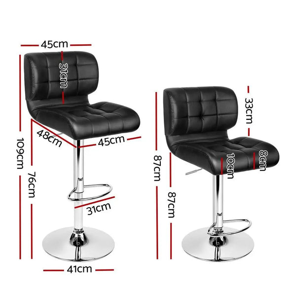 Artiss Set of 2 PU Leather Gas Lift Bar Stools - Black and Chrome