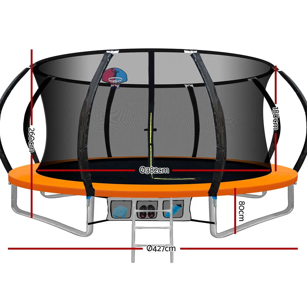 Everfit 14FT Trampoline Round Trampolines With Basketball Hoop Kids Present Gift Enclosure Safety Net Pad Outdoor Orange
