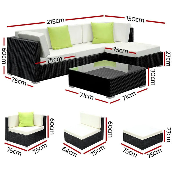 Gardeon 5PC Outdoor Furniture Sofa Set Wicker Garden Patio Pool Lounge