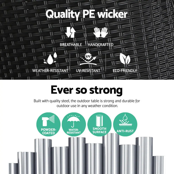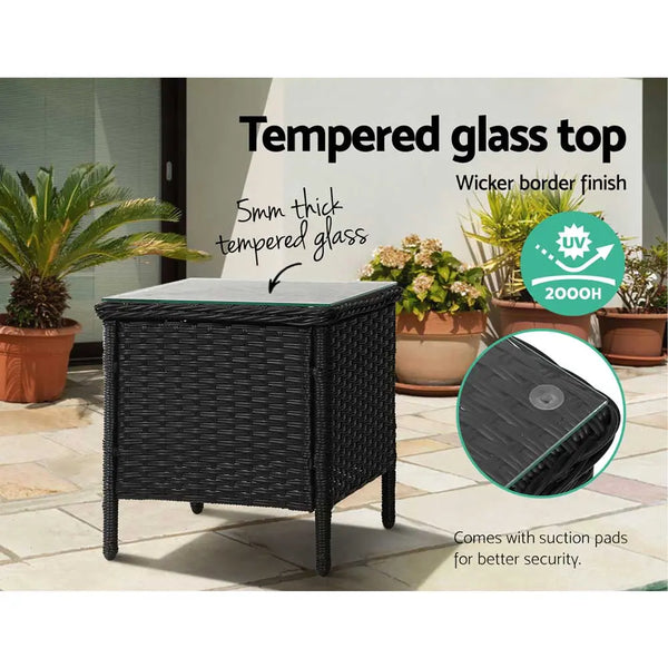Gardeon Side Table Coffee Patio Desk Outdoor Furniture Rattan Indoor Garden Black