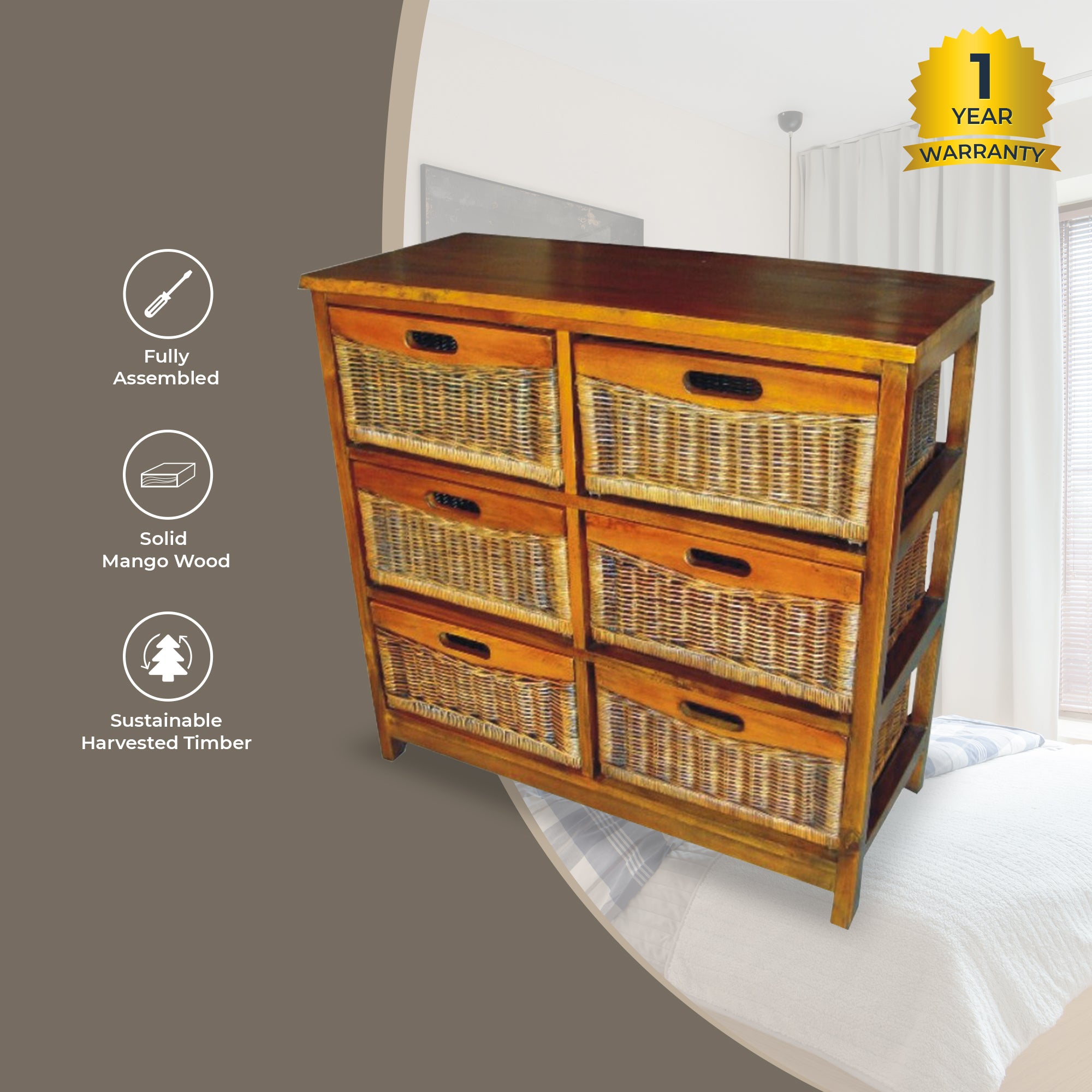 Hyssop Tallboy 6 Chest of Drawers Cane Bedroom Kitchen Bathroom Storage Shelf