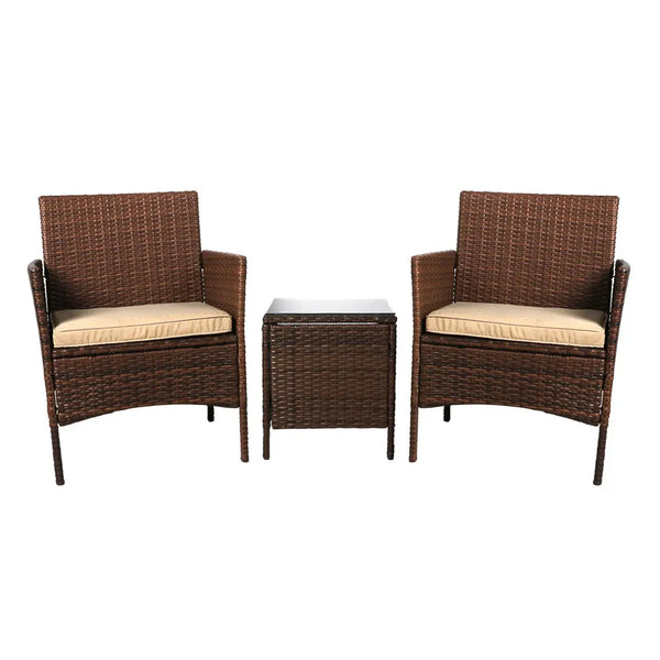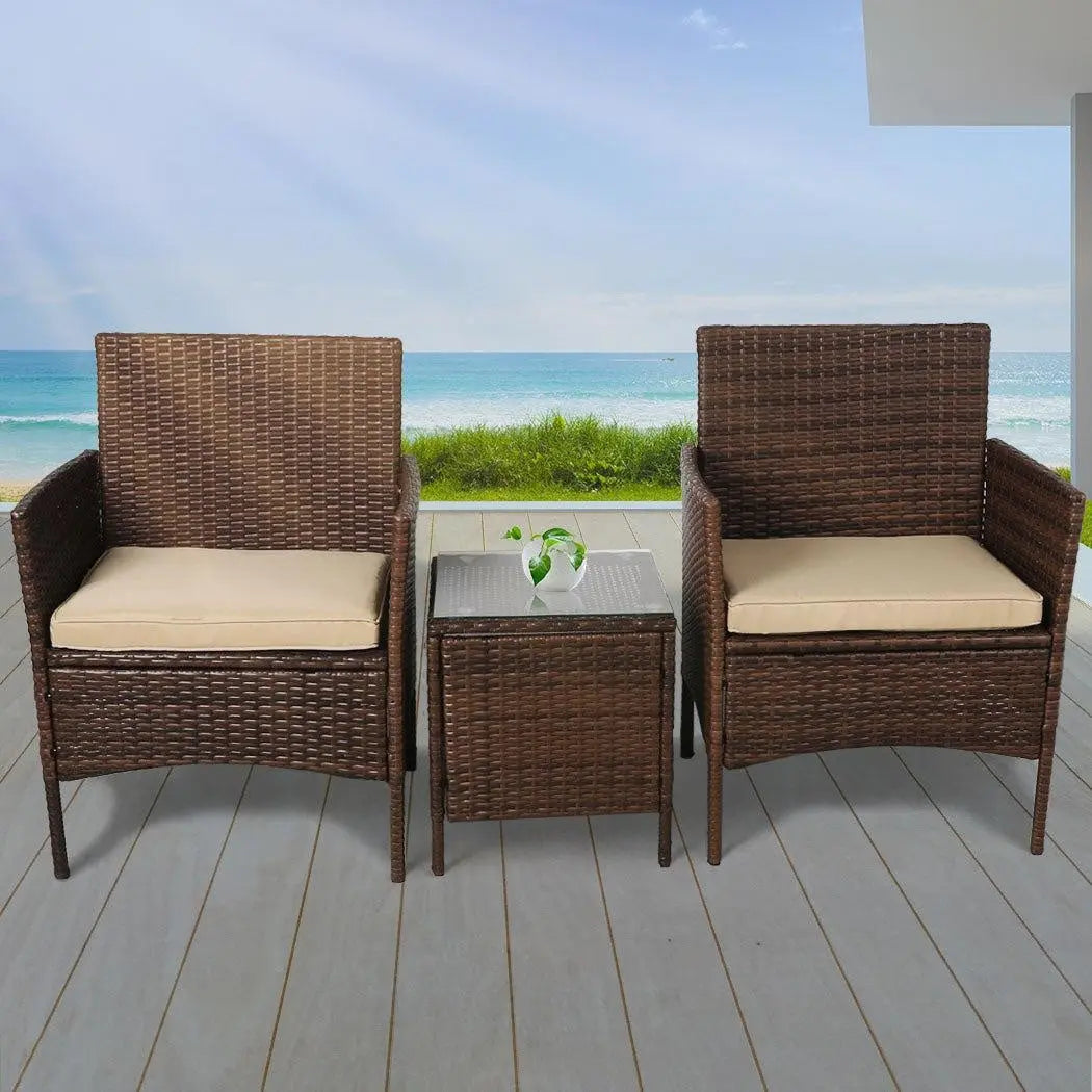 Outdoor Furniture Set Patio Garden 3 Pcs Chair Table Rattan Wicker Cushion Seat Brown